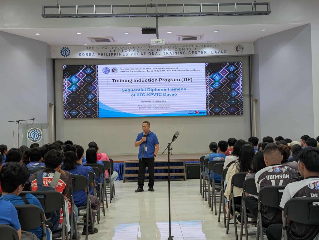 The Regional Training Center – Korea-Philippines Vocational Training Center (RTC-KPVTC) Davao conducted a Training Induction Program (TIP) for 504 Sequential Diploma trainees on September 23, 2025, at the institution’s Multipurpose Hall in Brgy. Tibungco, Davao City.